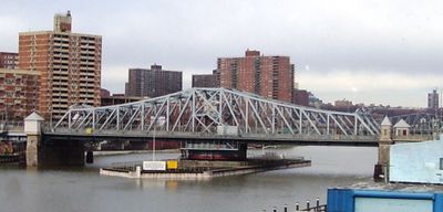 The Madison Avenue Bridge spans the Harlem River with four lanes connecting Madison Avenue in Manhattan to East 138th Street in The Bronx.
