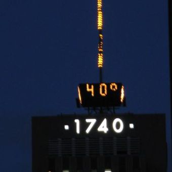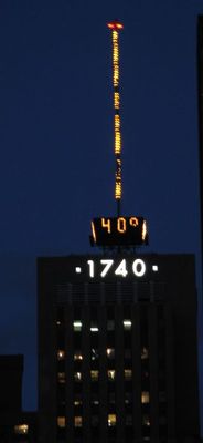 The building's Weather Star tower generated weather forecasts through colored lights: green for fair weather, orange for clouds, flashing orange for rain.