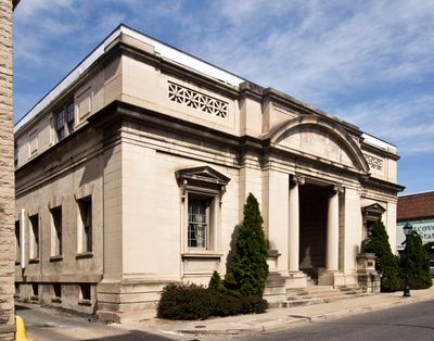 The library building represents early twentieth-century American commitment to public education through its monumental architectural proportions and stone construction.