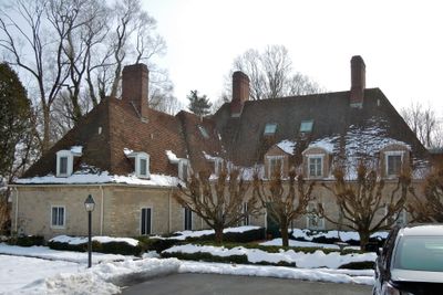 The structure maintains original Norman architectural elements while integrating into the Pennsylvania landscape, demonstrating early 20th-century American building practices.