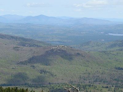 From the mountain's ledgy dome summit, visitors observe Ossipee Lake, Silver Lake, and the connected ridges of the Ossipee Mountain range.