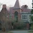 The property includes a semicircular driveway leading to a porte-cochere, with the main building measuring two and a half stories in height.