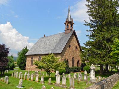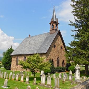 The church complex includes a frame school building constructed in 1844 and a cemetery containing 325 graves from the Revolutionary War period.