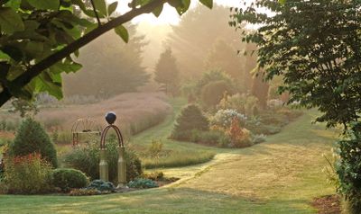The site was once an active dairy farm with a 1740 farmhouse that later fell into disuse. Development of the gardens began in 1980, transforming the abandoned property into what it is today.