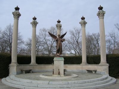 Daniel Chester French completed this bronze memorial in 1937 as his final work, following a commission from the Muncie Chamber of Commerce in 1927.