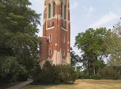 Located in the center of Michigan State University campus, the tower provides scheduled carillon concerts and remains open to visitors during daylight hours.