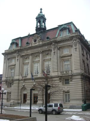 Architect Raymond F. Almirall designed this municipal building between 1897 and 1898, receiving National Register of Historic Places designation in March 1971.