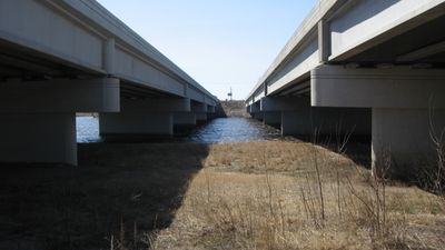 Built in two phases, the southbound section opened in 1993, while the northbound section replaced a 1967 plate girder bridge in 2001.
