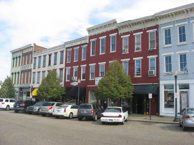 The Boneyfiddle Commercial District covers 35 acres at the confluence of the Scioto and Ohio rivers, featuring Greek Revival and Renaissance Revival architecture.