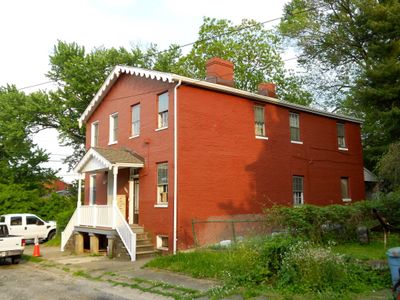 The Brick Hill district contains eleven masonry duplexes and two frame houses spread across four acres above the Jones Falls Valley.