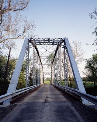 The Bullfrog Road Bridge spans across a waterway, incorporating construction methods and materials that showcase early 20th-century engineering standards.