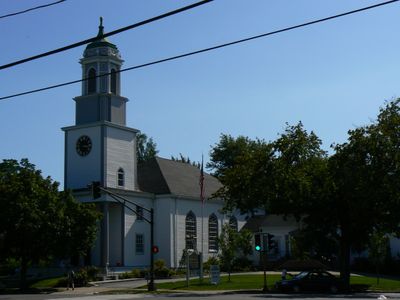 The church structure stands as a direct architectural reproduction of Boston's Kings Chapel, featuring a preserved historical belfry from the early 19th century.