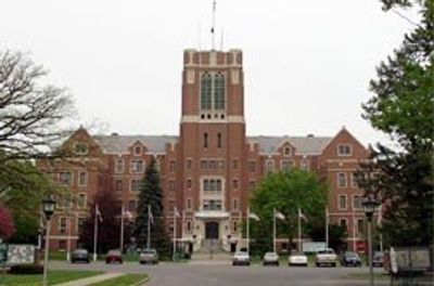 The Veterans Administration established this neuropsychiatric hospital in 1933, constructing the main buildings with Tudor Revival and Jacobethan Revival architectural elements.