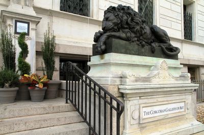 The Canova Lions stand at the entrance of the Corcoran Gallery of Art, cast in bronze from molds of the original marble sculptures.