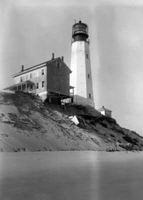 Cape Henlopen Light was a stone tower standing about 69 feet tall with walls nearly 6 feet thick at its base. It was positioned on the north side of the Great Dune to serve as a guiding beacon for ships.
