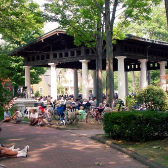 An open wooden amphitheater that seats several thousand people has stood at the center for over a century and is still used today for concerts and speeches. The acoustics in this structure without amplification allow speakers to be heard by audiences in the back rows.