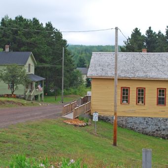 The Central Mine Historic District contains twenty remaining frame structures with gable roofs, porches, and stone foundations from an original collection of 130 buildings.