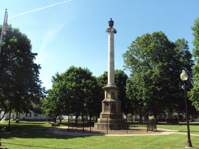 The Civil War Memorial stands as a commemorative structure featuring engraved names of soldiers who served during the American Civil War period.