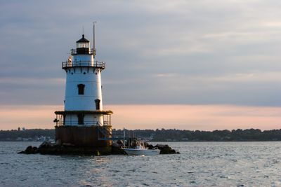 The lighthouse represents 19th century maritime engineering and stands as a symbol of Rhode Island's nautical heritage and navigation history.
