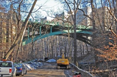 The Klingle Valley Bridge spans across the valley on Connecticut Avenue, connecting the Cleveland Park and Woodley Park neighborhoods through a steel-arch structure.
