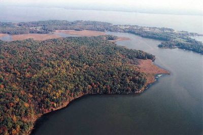 The preserve spans 3,344 acres of mixed hardwood forests, tidal wetlands, and steep ravines rising 160 feet above Potomac and Accokeek creeks.