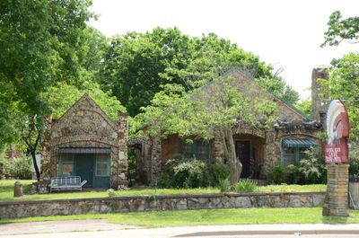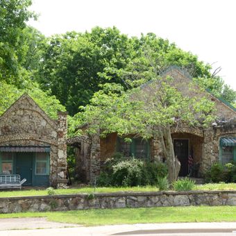 The Crystal River Tourist Camp includes eight fieldstone structures constructed with materials from the Ozark Mountains, featuring decorative elements of geodes and quartz.