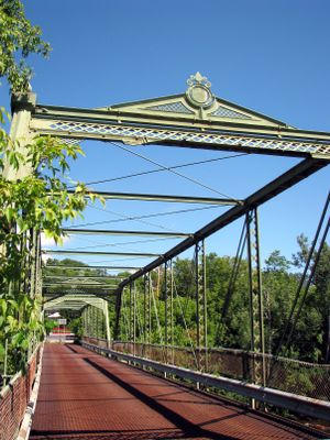 Murray Dougal & Company constructed this metal bridge in 1877 to replace a wooden structure that collapsed under snow and wind in 1875.