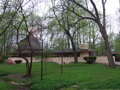 Richard Davis commissioned Frank Lloyd Wright to design this house after their meeting at Mayo Clinic in 1950 during Wright's gallbladder surgery.