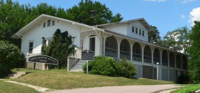 The Dr. Susan LaFlesche Picotte Memorial Hospital features American Craftsman architecture with a low-pitched roof, wide eaves, and a screened porch supported by columns.