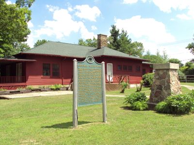 Visitors can access various facilities including meeting spaces, a kitchen, recreational areas, and preserved historical structures within the park grounds.
