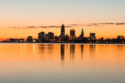 Downtown Cleveland is a central business district stretching along Lake Erie that contains modern skyscrapers, entertainment venues, and sports arenas. Connected districts feature public squares, shopping areas, and numerous dining options throughout.