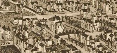 The district emerged in the 1890s around a train station, transforming from an industrial center into a residential area after the electric trolley arrival in 1905.