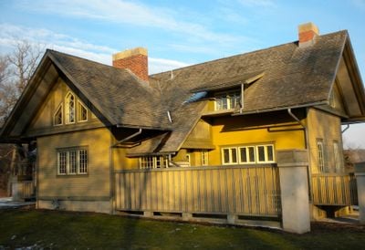The Fabyan Villa features three verandas, cathedral-style windows, and open floor plans designed according to Frank Lloyd Wright specifications in 1907.