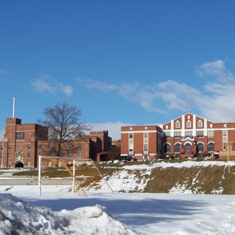 Fishburne Military School is a military academy located in Waynesboro, Virginia. The campus includes dormitories, classrooms, and athletic facilities organized around a central parade ground typical of military school layouts.