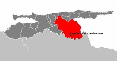 The lake sits 140 kilometers southeast of Cumana near the Guanoco River, approximately 25 kilometers east of Golfo de Paria.