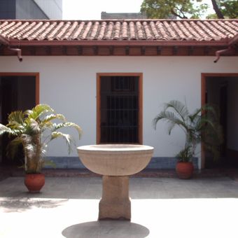 The main courtyard contains the original baptismal font from Caracas Cathedral where Simón Bolívar received his christening in 1783.