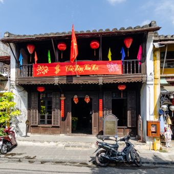 The Museum of Trade Ceramics occupies a two-floor wooden structure at 80 Tran Phu Street, featuring a central courtyard and multiple exhibition rooms.