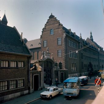 The Canisianum monastery complex features architectural elements from the Delft School, with seven distinct volumes arranged in a structured pattern on Tongersestraat.