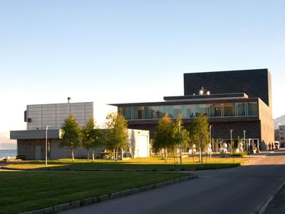 The Hålogaland Teater operates from a modern building at Teaterplassen, featuring two main stages, a café stage, and a rehearsal space for performances.