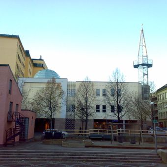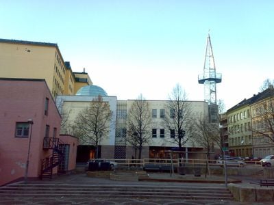 The building combines elements of Norwegian architectural design with traditional Islamic features, creating a distinct presence in Oslo's urban landscape.