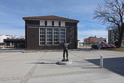 The structure maintains its original industrial architecture from its wartime construction while serving as a contemporary cultural center in Oslo's evolving urban landscape.