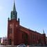 St. Petri Church stands near the city center of Stavanger with a prominent tower in the western section and red brick construction throughout the structure.