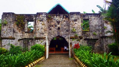Simbahang Bato is a 17th-century church ruin built from solid coral stone and lime mortar, with a small chapel incorporated within its ancient structure. The edifice shows the sturdy construction methods of the early missionary period, with walls thick enough to withstand centuries of weather and wear.