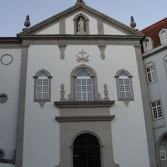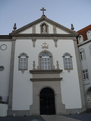 The Church of Montariol stands on Mount Calvelo, featuring a facade with the arms of the Order of Saint Francis and a niche containing a statue of Our Lady.