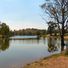 The Tapada Grande Dam reservoir features a designated beach area with sand stretches, grass zones, and complete recreational infrastructure for swimming and leisure.