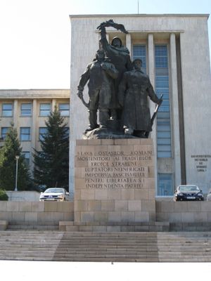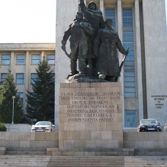 Inaugurated in 1957, this memorial stands in front of the National Defense University Carol I to commemorate Romanian soldiers who fought against fascism during World War II.