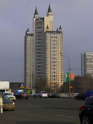 The building contains 105,000 square meters of floor space and represents the initial phase of Moscow's plan to construct sixty high-rise residential complexes.