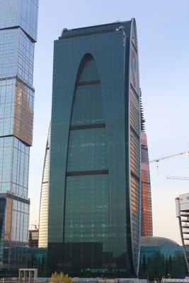 The building contains 33 elevators, 1500 parking spaces, and connects directly to Mezhdunarodnaya, Delovoy Tsentr, and Vystavochnaya metro stations.
