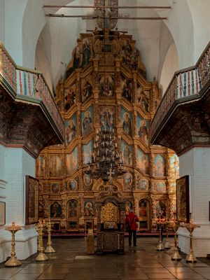 The cathedral embodies Russian Orthodox artistic heritage through its interior decorations that worshippers and visitors encounter when entering the space. These works form the visual foundation of how the community experiences religious practice today.