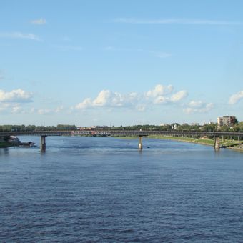 The bridge carries the name of Prince Alexander Nevsky, a medieval Russian ruler who protected Novgorod lands from foreign invaders in the 13th century.